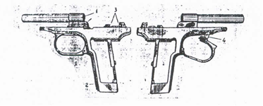 (2) Linh kiện cơ bản của súng, gồm: Thân súng, nòng súng, bộ phận cò, bộ phận khóa nòng, kim hỏa.