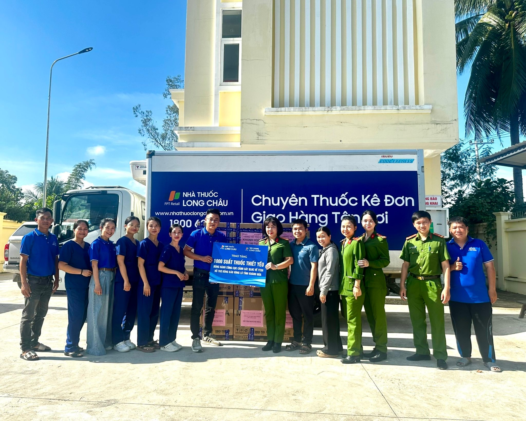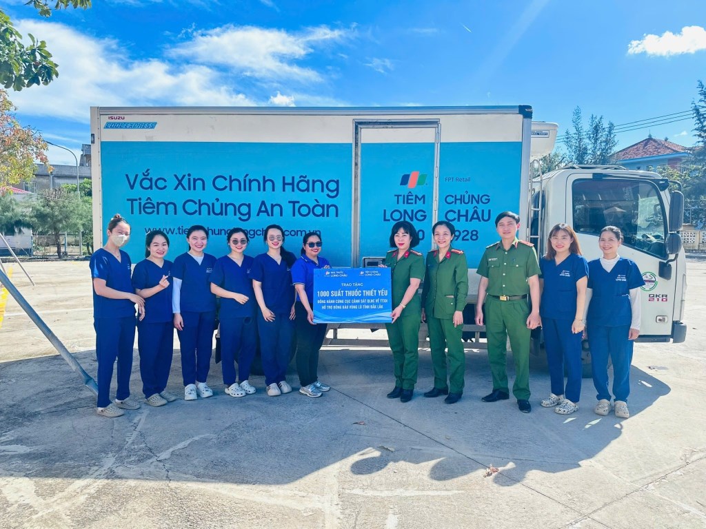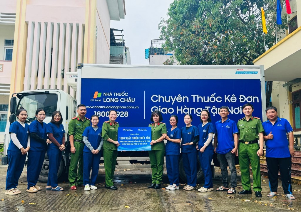 Trong 02 ngày 01, 02/12/2025, Cục Cảnh sát QLHC về TTXH và Công ty Cổ phần Dược phẩm FPT Long Châu đã tổ chức trao 3.300 suất thuốc thiết yếu cho Công an tỉnh Gia Lai, Đắk Lắk, Khánh Hoà tiếp nhận, điều phối đến Công an xã và Trung tâm Y tế một số xã trên địa bàn tỉnh để trao đến người dân vùng lũ. Hoạt động hỗ trợ tập trung vào việc cung cấp các loại thuốc thiết yếu (đau đầu, cảm cúm, vitamin C, thuốc ho, tiêu chảy, thuốc bôi da, bông băng…) đã góp phần cùng chính quyền địa phương chăm lo sức khỏe cho người dân; giúp bà con vùng lũ vững vàng hơn, sớm ổn định cuộc sống và tiếp tục vượt qua khó khăn sau bão lũ.