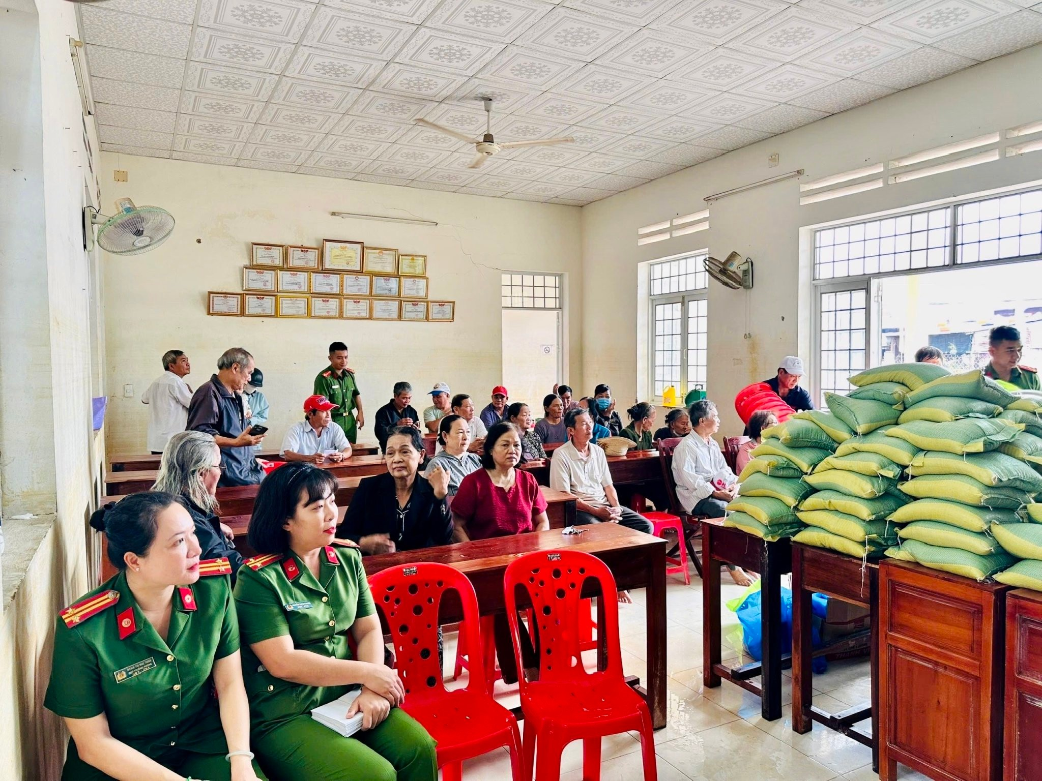 Để kịp thời hỗ trợ người dân khắc phục hậu quả do bão lũ gây ra, Cục Cảnh sát QLHC về TTXH phối hợp với Phòng Cảnh sát QLHC về TTXH Công an tỉnh Gia Lai, Đắk Lắk, Khánh Hoà tổ chức trao tặng 155 suất quà quà cho 155 gia đình có hoàn cảnh khó khăn bị thiệt hại do bão lũ từ nguồn lực đóng góp ủng hộ của cán bộ, chiến sĩ trong đơn vị và vận động Nhân dân cùng đồng hành ủng hộ, mỗi suất quà trao đến người dân gồm: túi thuốc thiết yếu của Nhà thuốc Long Châu, gạo, dầu ăn, mắm, nêm, đường và tiền mặt). Tổng kinh phí hỗ trợ khoảng 450 triệu đồng. Người dân rất phấn khởi khi nhận được những phần quà hỗ trợ vô cùng ý nghĩa, thiết thực và gửi lời cảm ơn chân thành đến Cục Cảnh sát QLHC về TTXH cùng với các đơn vị đồng hành đã quan tâm, hỗ trợ người dân vượt qua khó khăn sau bão lũ.