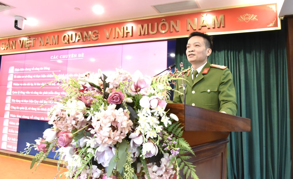 Phát biểu khai mạc, Đại tá Trần Hồng Phú - Phó Bí Thư Đảng ủy - Phó Cục trưởng Cục Cảnh sát Quản lý hành chính về trật tự xã hội - Bộ Công an nhấn mạnh vai trò then chốt của công tác xây dựng Đảng; việc bồi dưỡng nghiệp vụ ngay từ đầu nhiệm kỳ là yêu cầu cần thiết, cấp bách nhằm nâng cao chất lượng, hiệu quả công tác Đảng trong toàn Đảng bộ.