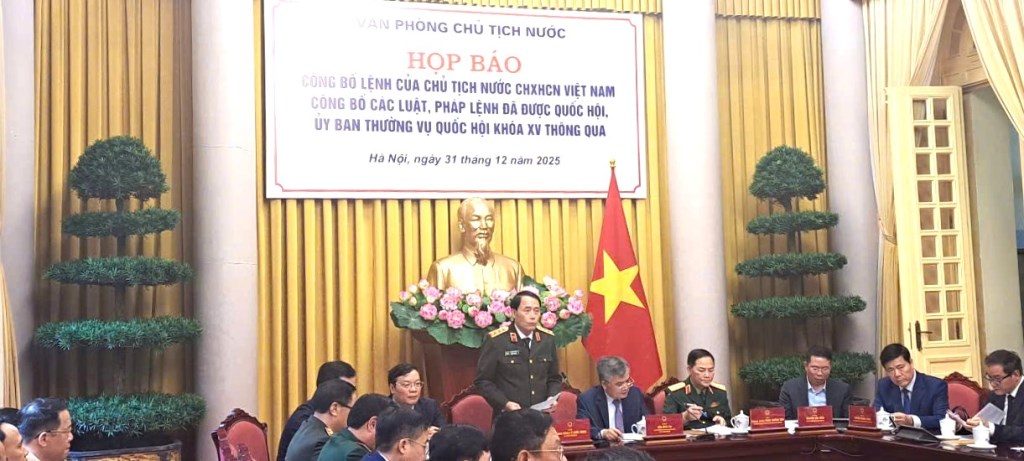 Chiều 31/12, Văn phòng Chủ tịch nước tổ chức họp báo công bố Lệnh của Chủ tịch nước về các luật, pháp lệnh đã được Quốc hội, Ủy ban Thường vụ Quốc hội khóa XV thông qua.