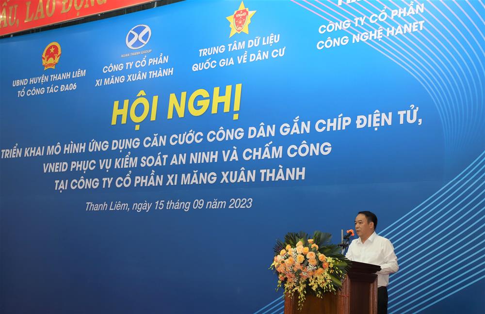 Ngày 15/9/2023, Ủy ban nhân dân huyện Thanh Liêm, tỉnh Hà Nam phối hợp với Trung tâm dữ liệu quốc gia về dân cư, Công ty cổ phần xi măng Xuân Thành, Công ty cổ phần công nghệ HANET tổ chức Hội nghị triển khai Mô hình “Ứng dụng Căn cước công dân gắn chip điện tử, VNeID phục vụ kiểm soát an ninh và chấm công tại Công ty cổ phần xi măng Xuân Thành (xã Thanh Nghị, huyện Thanh Liêm).