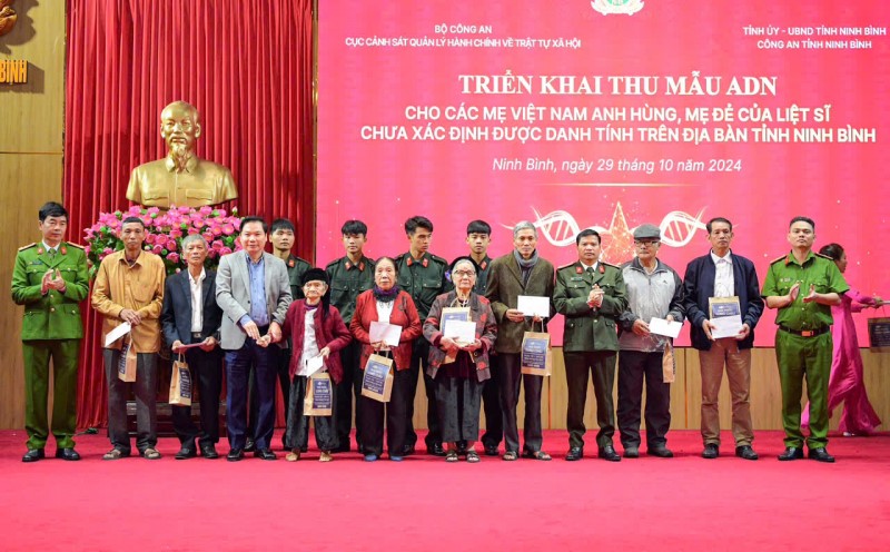 Nhân dịp này, lãnh đạo UBND tỉnh Ninh Bình, Công an tỉnh Ninh Bình và Cục Cảnh sát QLHC về TTXH đã trao quà cho các Mẹ Việt Nam anh hùng và đại diện gia đình Mẹ Việt Nam anh hùng; quà cho các mẹ liệt sĩ và thân nhân mẹ liệt sĩ chưa xác định danh tính tham gia lấy mẫu tại chương trình./.