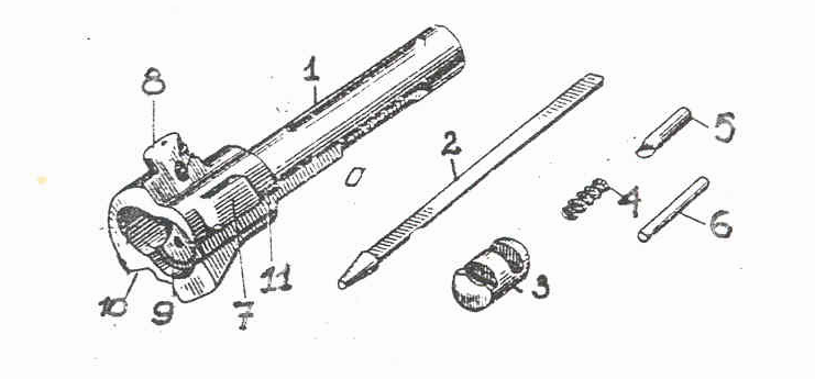 (2) Linh kiện cơ bản của súng, gồm: Thân súng, nòng súng, bộ phận cò, bộ phận khóa nòng, kim hỏa.