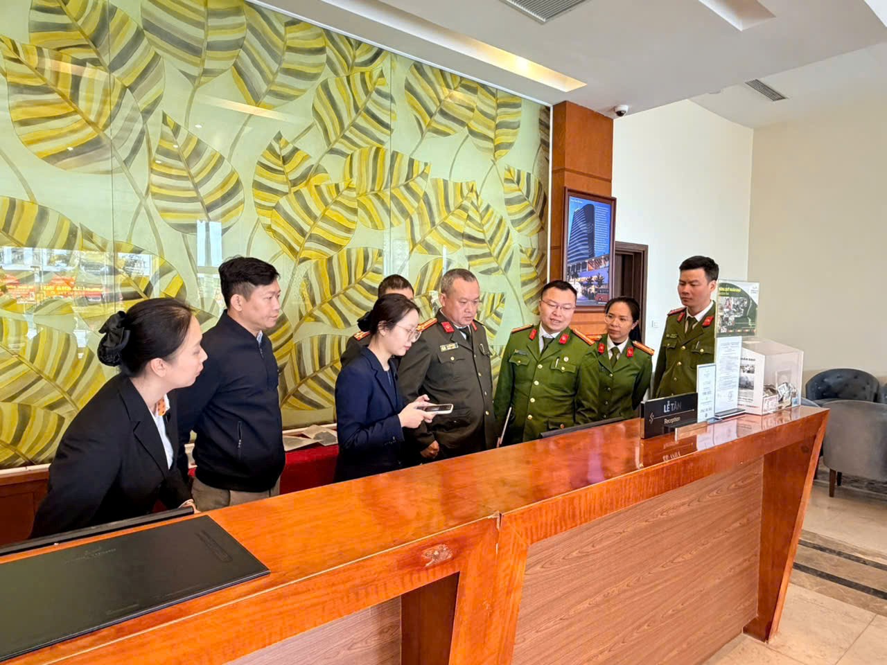 Đoàn khảo sát tiến hành khảo sát thực tế Phần mềm khai báo tạm trú cho người nước ngoài đang triển khai tại Khách sạn Mường Thanh – Hạ Long
