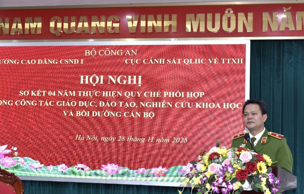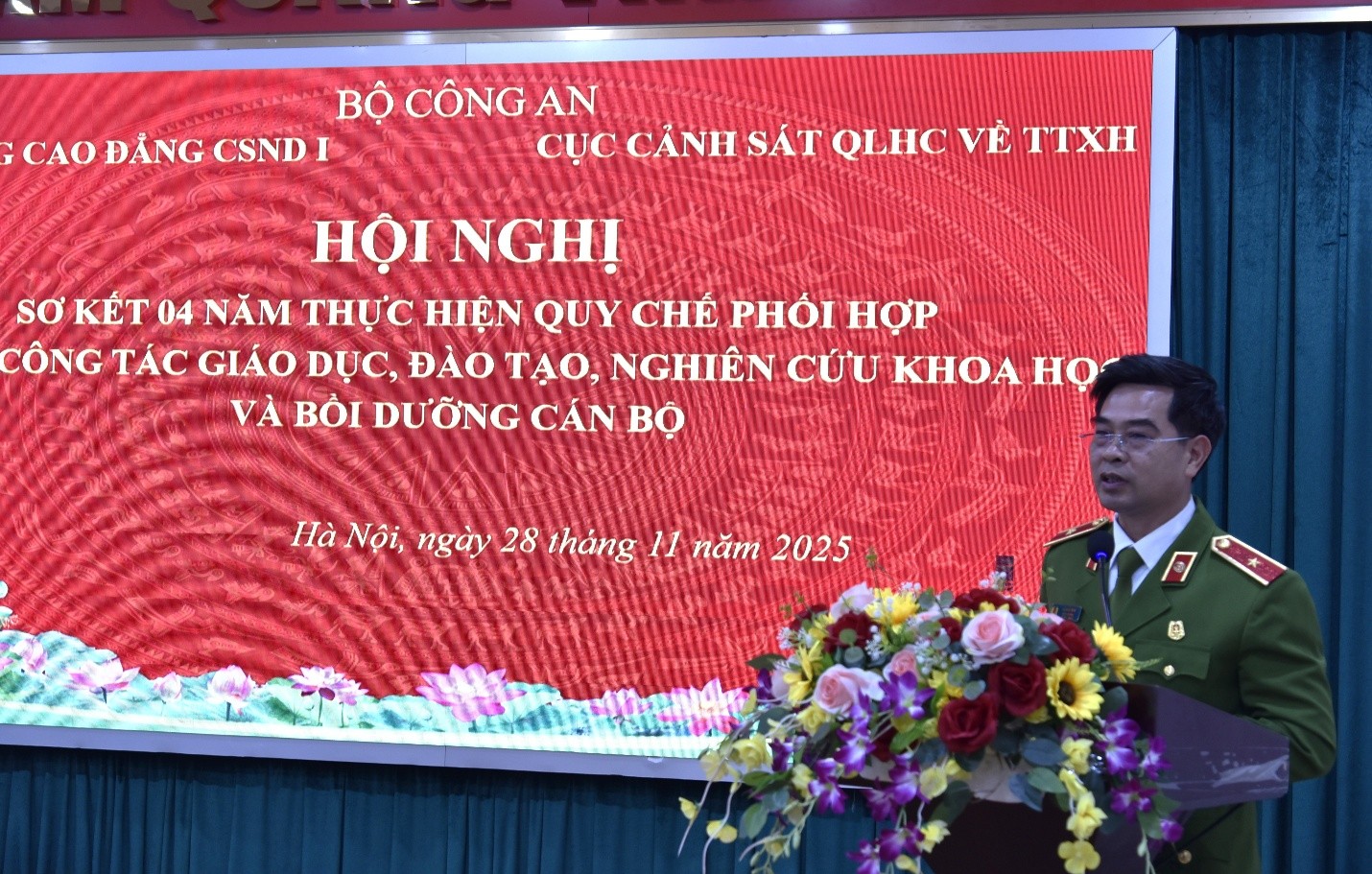 Ngày 28/11/2025, tại Trường Cao đẳng Cảnh sát nhân dân I, Cục Cảnh sát quản lý hành chính về trật tự xã hội và Trường Cao đẳng Cảnh sát nhân dân I đã tổ chức Hội nghị sơ kết 04 năm thực hiện Quy chế phối hợp trong công tác giáo dục, đào tạo, nghiên cứu khoa học và bồi dưỡng cán bộ. Hội nghị nhằm đánh giá toàn diện kết quả đạt được, nhận diện khó khăn, vướng mắc và đề ra định hướng hợp tác trong thời gian tới.