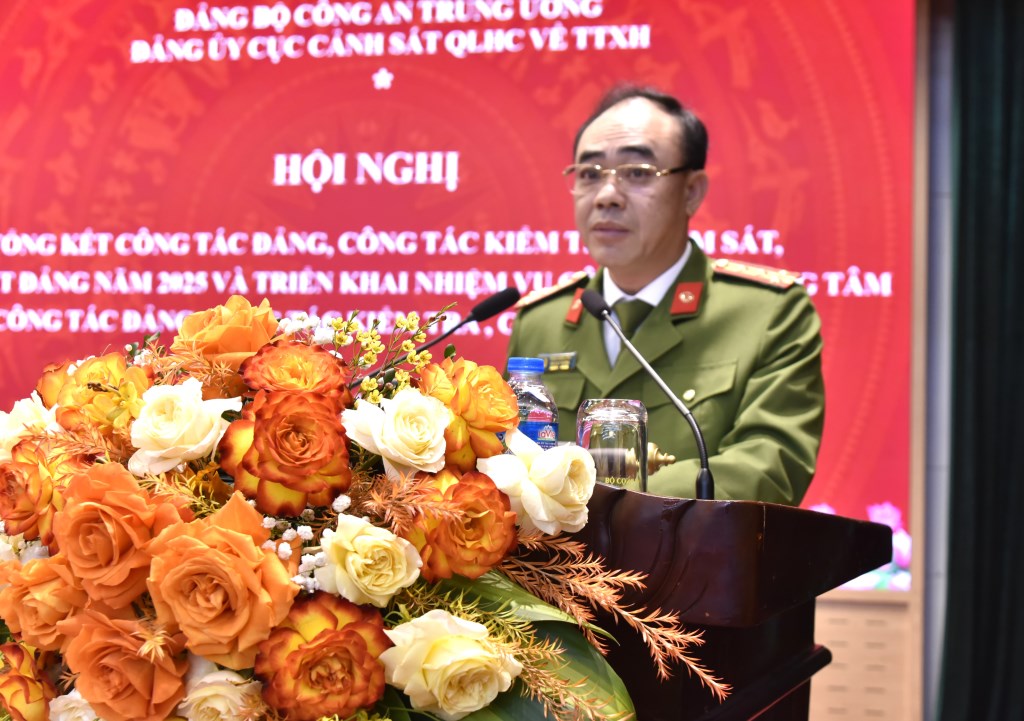 Có thể nói, năm 2025, tình hình thế giới, khu vực tiếp tục diễn biến nhanh chóng, khó lường; tình hình tội phạm, tệ nạn xã hội diễn biến phức tạp; cuộc cách mạng về tinh gọn bộ máy hệ thống chính trị, sắp xếp, sáp nhập địa giới đơn vị hành chính cấp tỉnh, cấp xã; từ chính quyền địa phương 03 cấp thành chính quyền địa phương 02 cấp được ví với “sắp xếp lại giang sơn”; cùng với đó Bộ Chính trị ban hành 07 nghị quyết được xác định là đột phá đưa đất nước bước vào kỷ nguyên mới... đặt ra nhiều khó khăn, thách thức đối với nhiệm vụ bảo vệ an ninh quốc gia, bảo đảm trật tự an toàn xã hội và công tác xây dựng Đảng, xây dựng lực lượng; Cục Cảnh sát QLHC về TTXH được lãnh đạo Bộ Công an giao tham mưu, triển khai nhiều nhiệm vụ mang tính chiến lược, có tầm ảnh hưởng sâu rộng đến mọi mặt của đời sống, xã hội, nhiều nhiệm vụ mới, nhiệm vụ khó phát sinh... Song, Đảng ủy Cục đã bám sát Nghị quyết của Đảng ủy CATW, các Chương trình công tác lớn của Bộ để quán triệt, cụ thể hóa thành các nghị quyết, kế hoạch, chương trình hành động tập trung lãnh đạo, chỉ đạo tổ chức triển khai thực hiện có hiệu quả các nhiệm vụ chính trị, công tác xây dựng Đảng, xây dựng lực lượng trong Đảng bộ, nổi bật là: