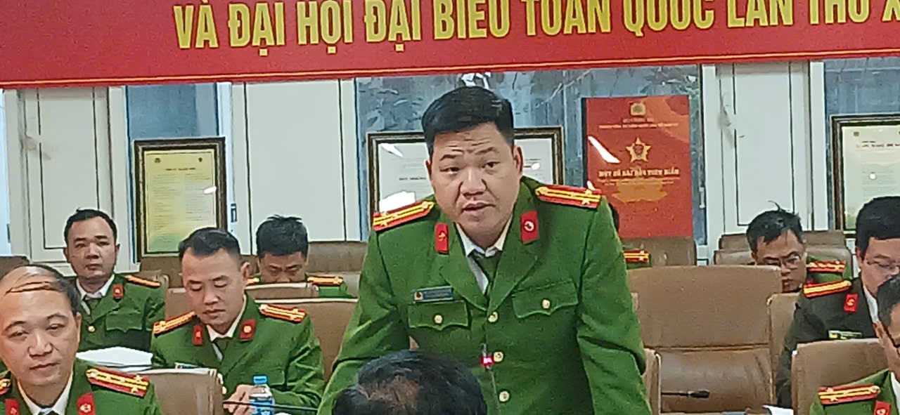 Đồng chí Thượng tá Nguyễn Hùng Quân, Phó Trưởng phòng Cục Cảnh sát Hình sự phát biểu tại Hội nghị