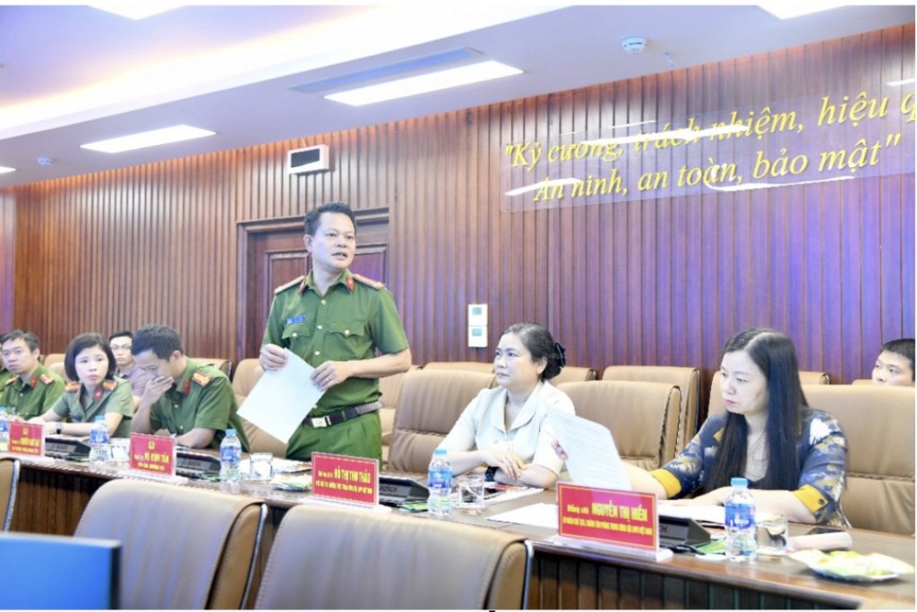 Đồng chí Đại tá Vũ Văn Tấn, Phó Cục trưởng Cục Cảnh sát QLHC về TTXH phát biểu tại buổi làm việc