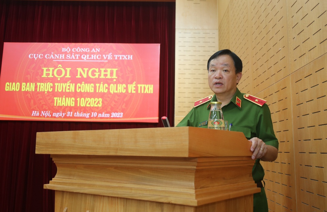 Chiều ngày 31/10/2023, tại Hà Nội, Cục Cảnh sát quản lý hành chính về trật tự xã hội (QLHC về TTXH), Bộ Công an tổ chức Hội nghị giao ban trực tuyến công tác QLHC về TTXH tháng 10/2023. Đồng chí Trung tướng Nguyễn Duy Ngọc, Ủy viên Trung ương Đảng, Thứ trưởng Bộ Công an dự và chỉ đạo Hội nghị. Tại điểm cầu Hà Nội, đồng chí Thiếu tướng Phùng Đức Thắng, Phó Cục trưởng Cục Cảnh sát QLHC về TTXH chủ trì Hội nghị; cùng tham dự có đồng chí Đại tá Vũ Văn Tấn, Phó Cục trưởng; đại diện lãnh đạo các đơn vị chức năng thuộc Bộ Công an và lãnh đạo các Phòng, Trung tâm thuộc Cục Cảnh sát QLHC về TTXH. Tại điểm cầu Công an các địa phương, có đại diện Ban Giám đốc, đại diện lãnh đạo các Phòng nghiệp vụ, Công an cấp huyện, Đội Cảnh sát QLHC về TTXH, chỉ huy Công an xã thuộc Công an các địa phương.
