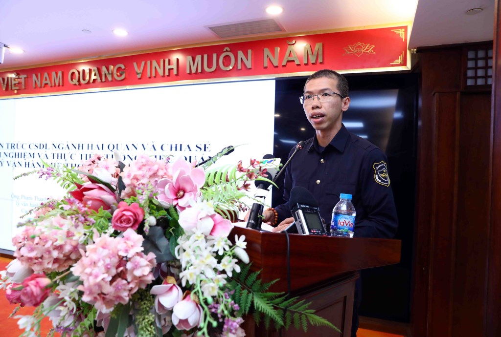 Ông Phạm Thành Trung, Phó Giám đốc Trung tâm Quản lý vận hành hệ thống Công nghệ thông tin Hải quan, Cục Công nghệ thông tin và thống kê Hải quan trình bày tại Hội thảo