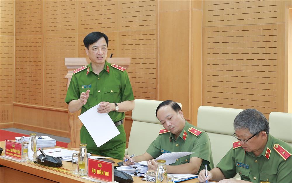 Đại tá Vũ Văn Tấn, Phó Cục trưởng Cục Cảnh sát quản lý hành chính về trật tự xã hội, Bộ Công an trình bày Báo cáo tại cuộc họp