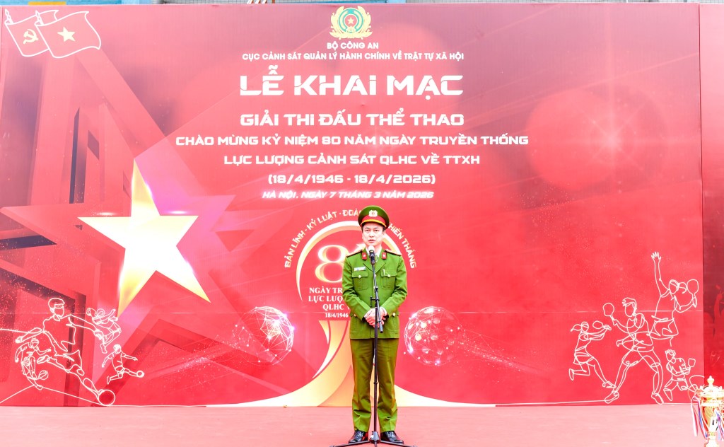 Tham dự và phát biểu khai mạc giải đấu có Đồng chí Đại tá Phùng Xuân Tiến – Phó Cục trưởng Cục Cảnh sát QLHC về TTXH phát biểu khai mạc, đồng chí nhấn mạnh ý nghĩa thiết thực của các hoạt động thể thao trong việc tăng cường tinh thần đoàn kết, rèn luyện thể lực, nâng cao đời sống tinh thần cho cán bộ, chiến sĩ; đồng thời góp phần xây dựng lực lượng Cảnh sát Quản lý hành chính về trật tự xã hội ngày càng chính quy, tinh nhuệ, hiện đại, đáp ứng yêu cầu nhiệm vụ trong tình hình mới. Đồng chí cũng ghi nhận và trân trọng cảm ơn sự tham gia tích cực của Công an các đơn vị, địa phương cùng sự đồng hành của các doanh nghiệp đã góp phần tạo nên thành công của giải đấu.
