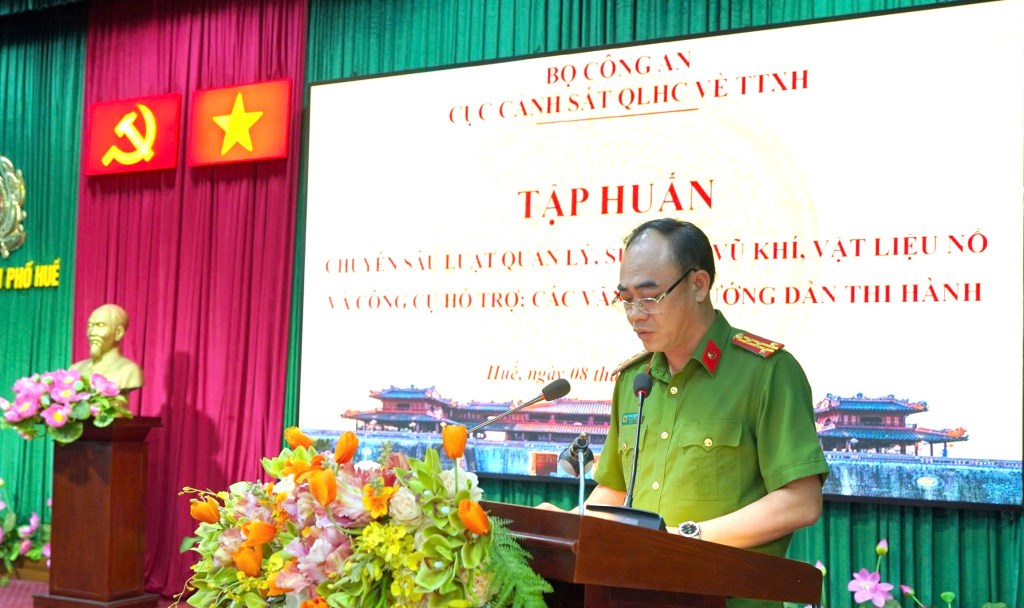 Phát biểu tại buổi khai mạc, đồng chí Đại tá Nguyễn Viết Hoàng, Phó Giám đốc Công an thành phố Huế bày tỏ vui mừng khi Cục Cảnh sát QLHC về TTXH đã chủ trì, phối hợp với Công an thành phố Huế tổ chức tập huấn chuyên sâu Luật Quản lý, sử dụng vũ khí, vật liệu nổ và công cụ hỗ trợ và các văn bản hướng dẫn thi hành cho Công an 34 địa phương. Thông qua buổi tập huấn, lãnh đạo, cán bộ, chiến sỹ tại các địa phương sẽ nâng cao nhận thức, ý thức chấp hành pháp luật và vai trò, trách nhiệm của lãnh đạo, chỉ huy, cán bộ trong thực hiện các quy định của pháp luật về quản lý, sử dụng vũ khí, vật liệu nổ, công cụ hỗ trợ, đáp ứng yêu cầu nhiệm vụ công tác./.
