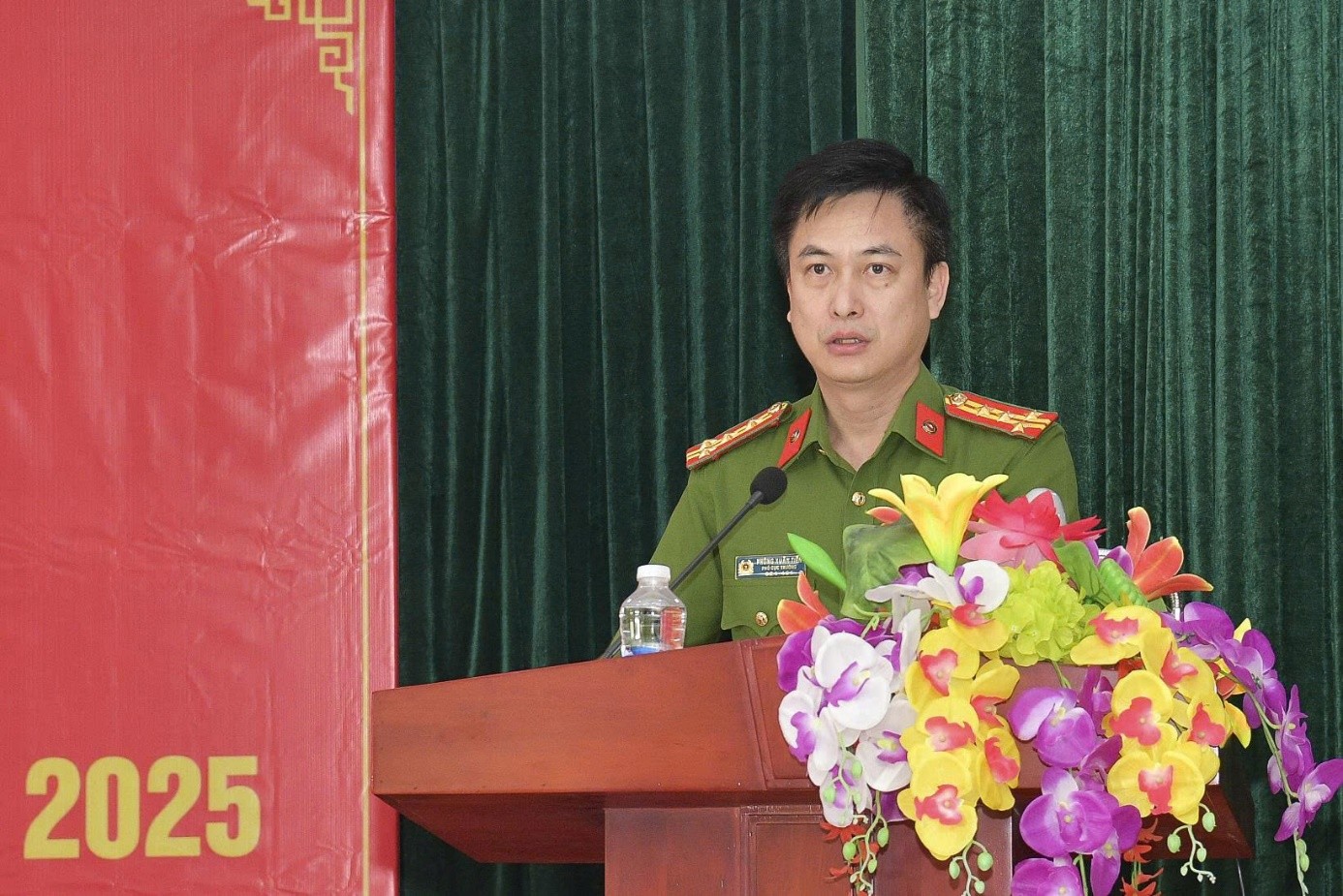 Đại tá Phùng Xuân Tiến – Phó Cục trưởng, Cục Cảnh sát QLHC về TTXH phát biểu khai giảng lớp tập huấn.