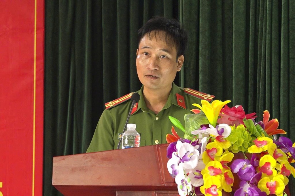 Thượng tá Nguyễn Quang Trung - Phó Trưởng phòng Cảnh sát QLHC về TTXH Công an tỉnh Quảng Trị phát biểu tiếp thu chỉ đạo.